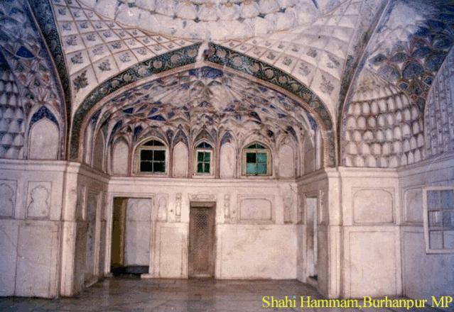 In the middle of the monument there is a octagonal bath-place. The bath-place was connected with the water system of Khuni Bhandara. Colorful Mughal Paintings can be seen on the ceiling of the monument.